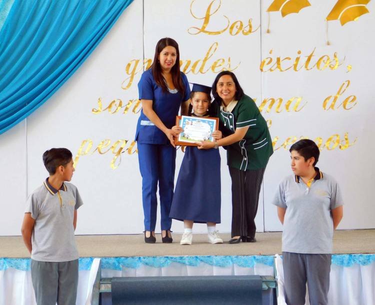La profesora Alejandra Santos, directora del establecimiento destacó que: “esta ceremonia es una de las celebraciones más importantes para nuestra escuela, precisamente en este acto reconocemos a nuestros estudiantes, quienes por un lado hacen su transición de la educación parvularia al nivel de la educación básica, y por otro premiamos a quienes con esfuerzos ven reflejados sus resultados en el proceso formativo dentro de nuestra comunidad educativa. Aquí no solo queremos destacar a quienes sobresalen por su conocimiento, aprendizaje y competencias, también a aquellos que por su integridad, responsabilidad y compromiso sobresalen dentro de la comunidad. También a través de estas distinciones a nuestros alumnos, agradecemos y valoramos a las familias que se han sumado la tarea de darle lo mejor a sus hijos, brindándoles siempre nuevas y mejores oportunidades de desarrollo. Valoramos la confianza que nos entregan a depositar en nuestras manos el futuro de estos pequeños, quienes tenemos la certeza recordaran su paso por nuestra escuela”, dijo la docente-directiva.