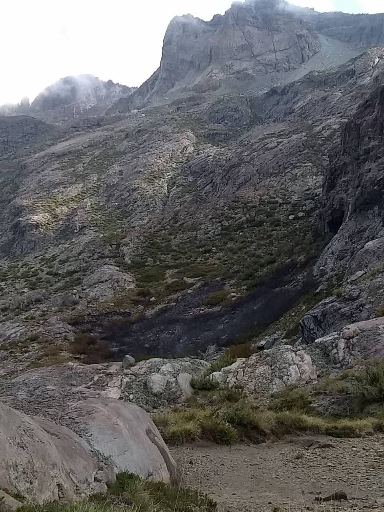 Para llegar a este lugar se requieren de cuatro días y extensas caminatas. Fue justamente en este recorrido donde se encontró con una serie de desechos, principalmente latas de cerveza. A eso se suman incendios de ñirres.